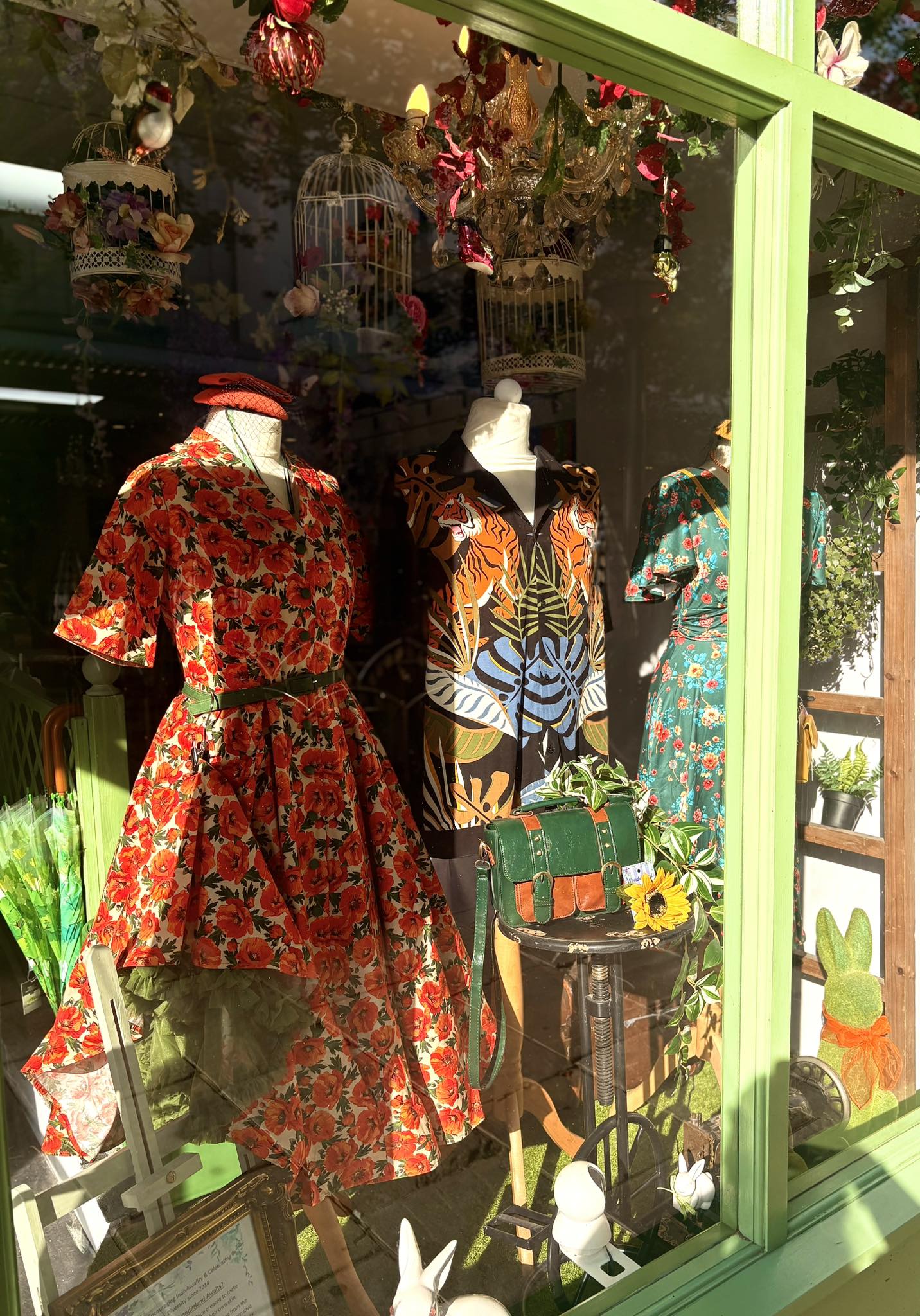 Penelope Cream Rockabilly Floral & Subtle Checkered Print Dress