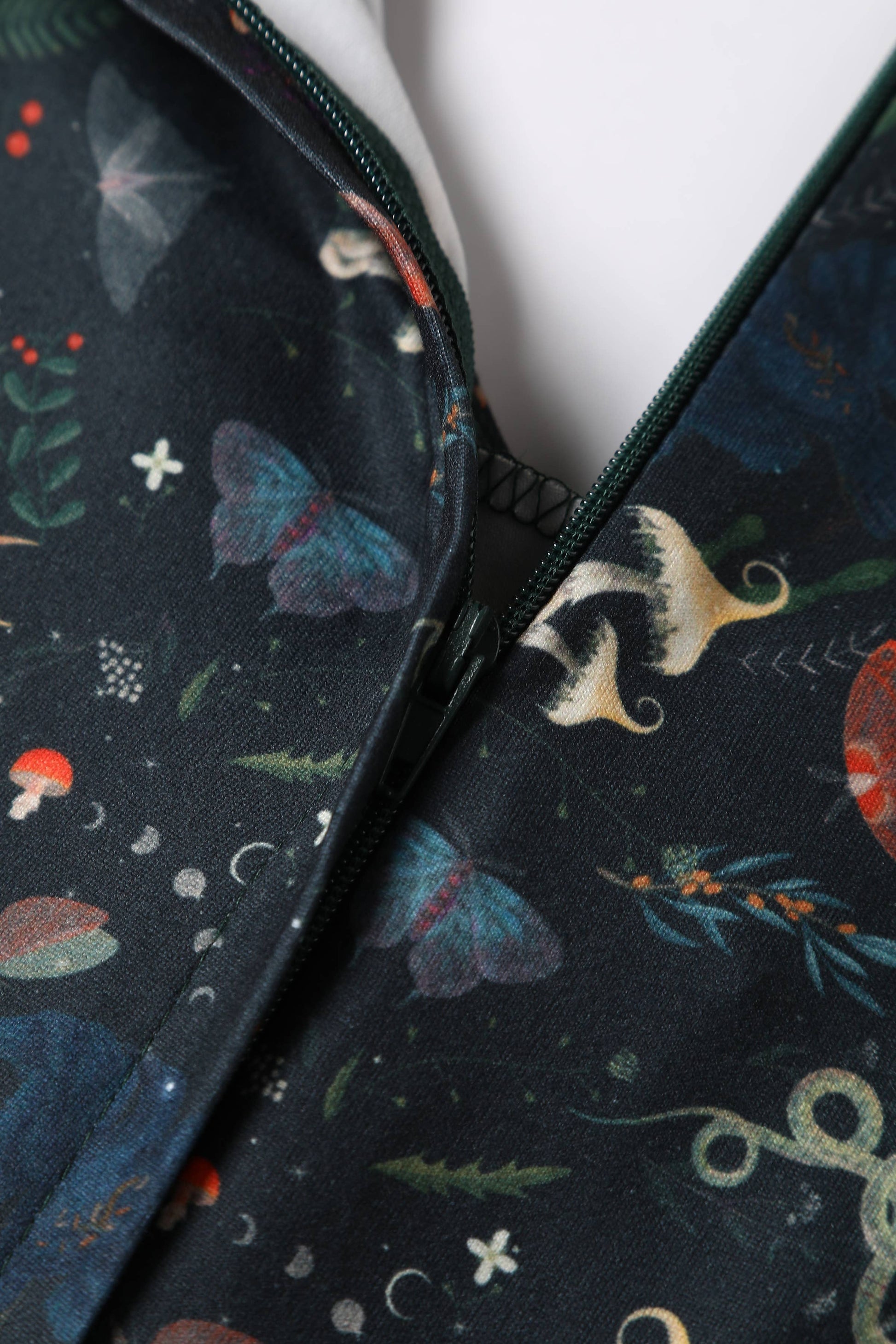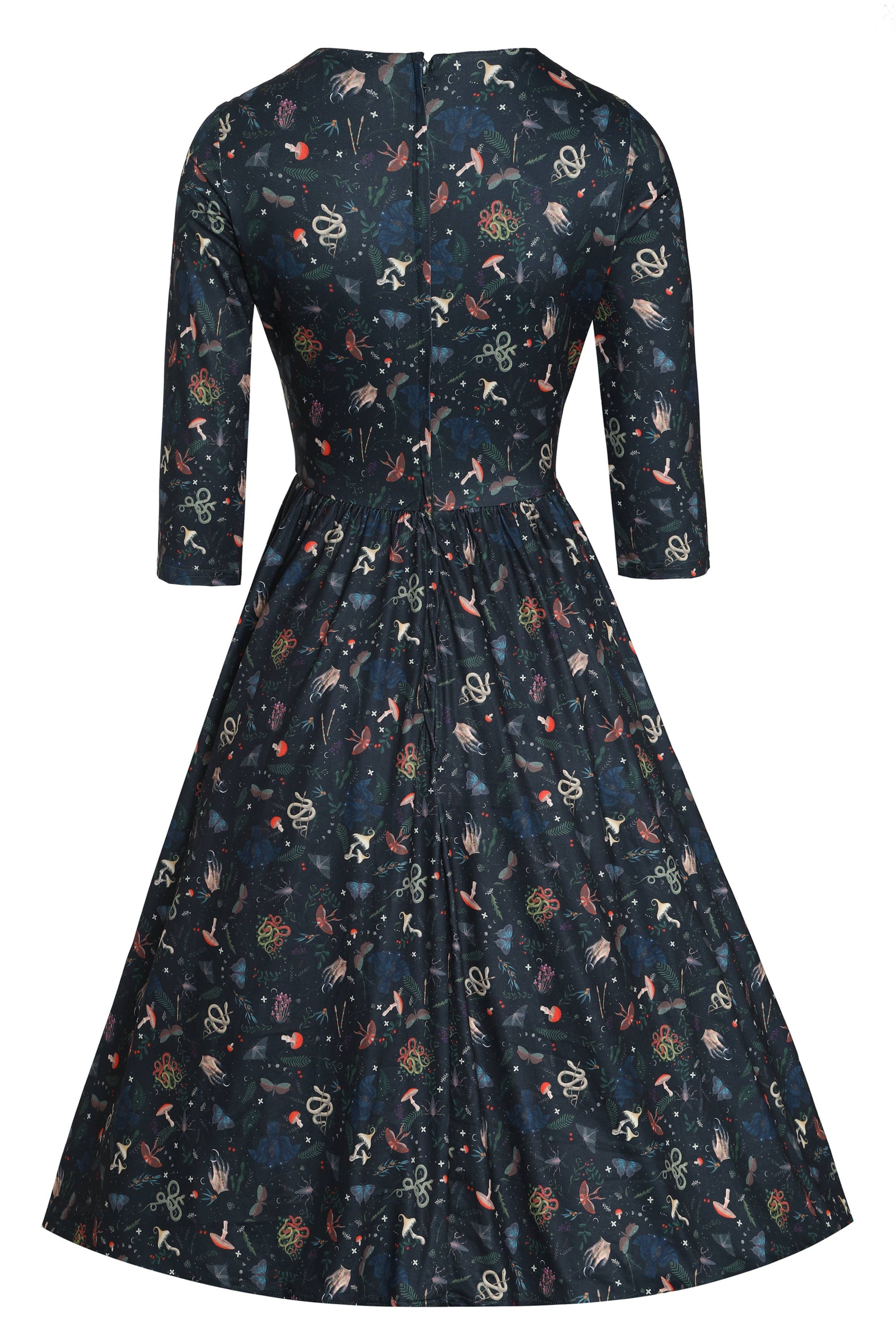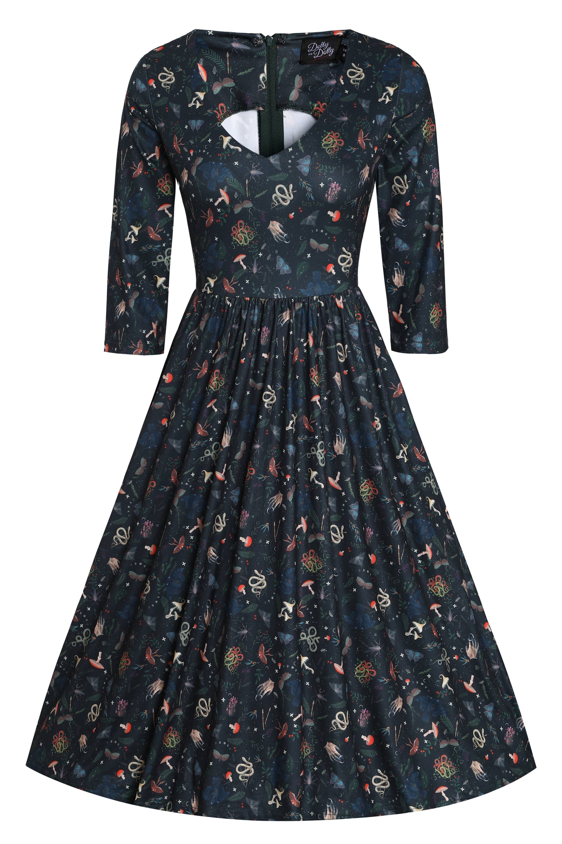 Billie Long Sleeved Dress in Dark Green Mystical Forest
