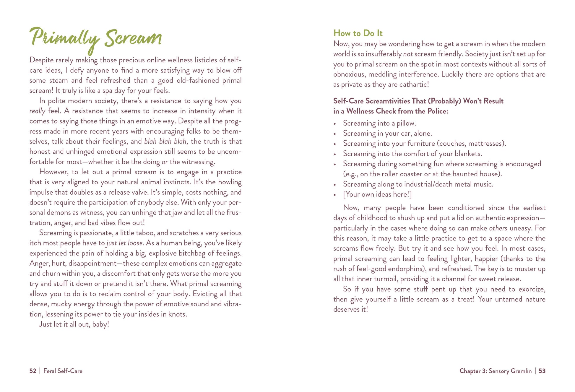 It’s time for a new type of self-care. No bubble baths. No yoga. Just some truly wild—truly effective—ideas and activities that are good for you and your overall wellness. It’s time to get feral!