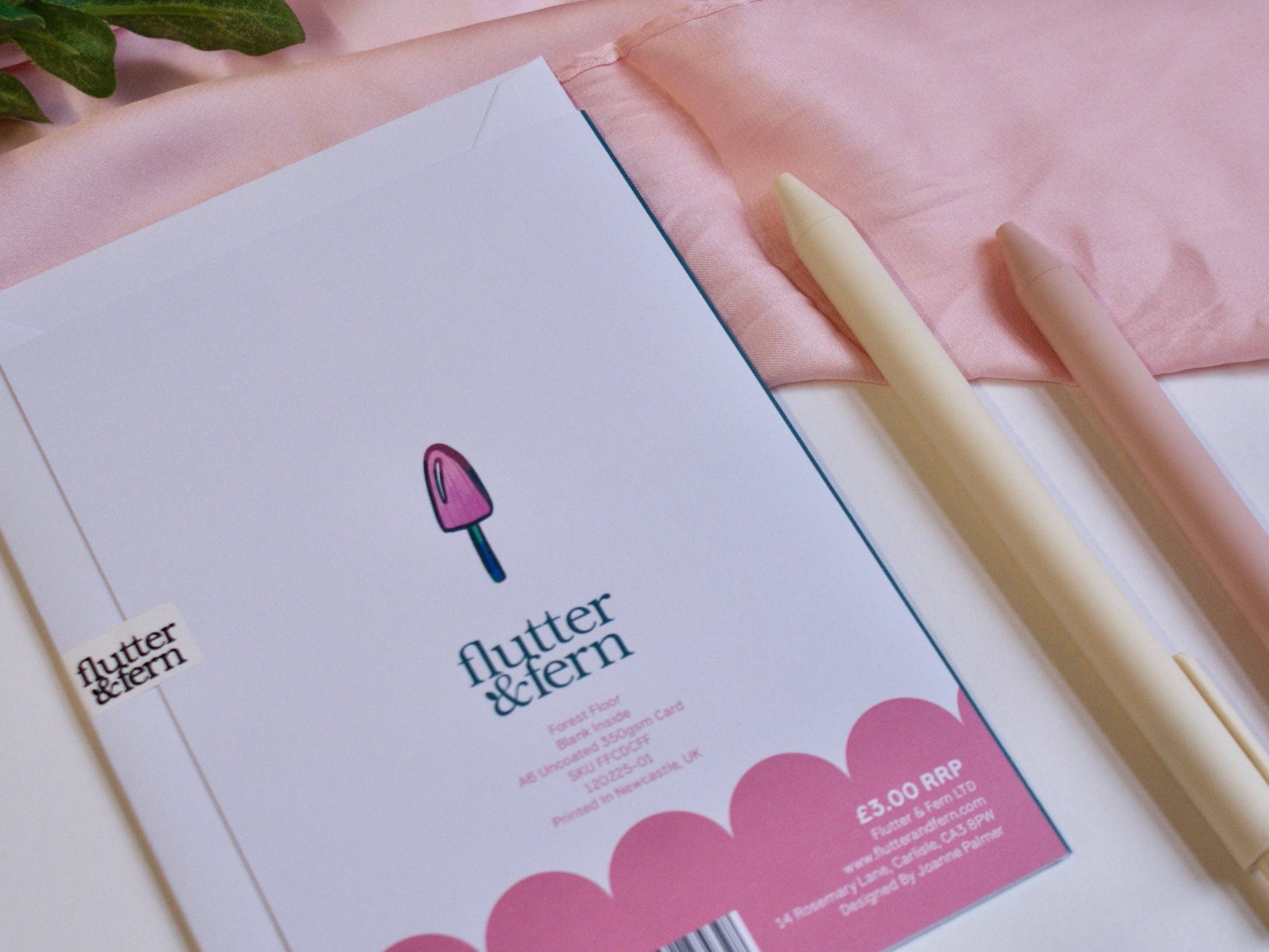 Bring the whimsy of the forest floor to your friends with our A6 card. Featuring a rich dark green background and charming mushrooms and leaves, this card is the perfect balance of symmetry and quirkiness. Perfect for nature lovers and free-spirited writers alike!