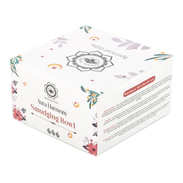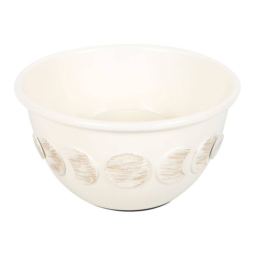 Ideal for altar rituals and home cleansing, this metal smudge bowl features the lunar cycle in a brushed white design. The deep bowl shape is perfect for holding smudge sticks, herbs, or incense during burning.