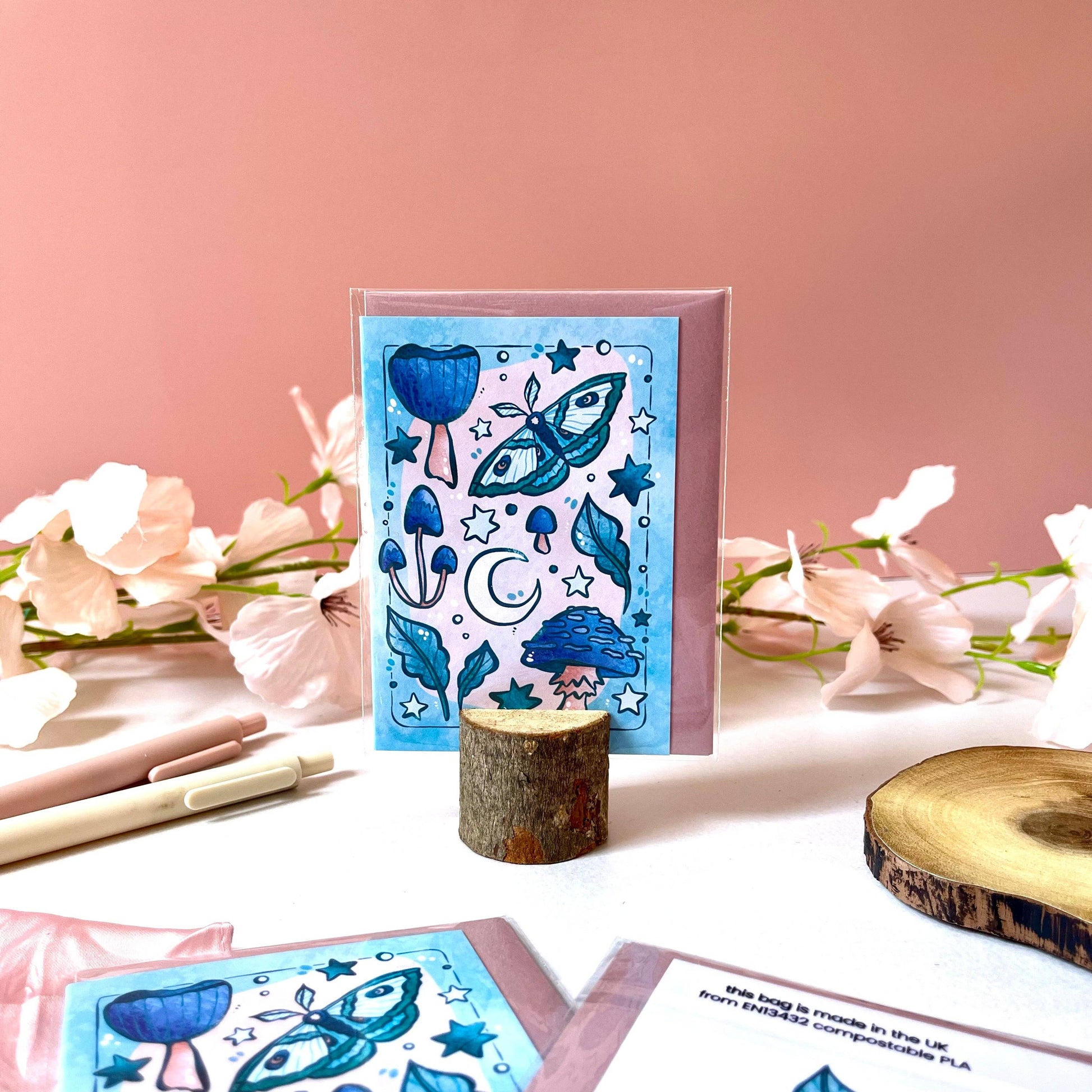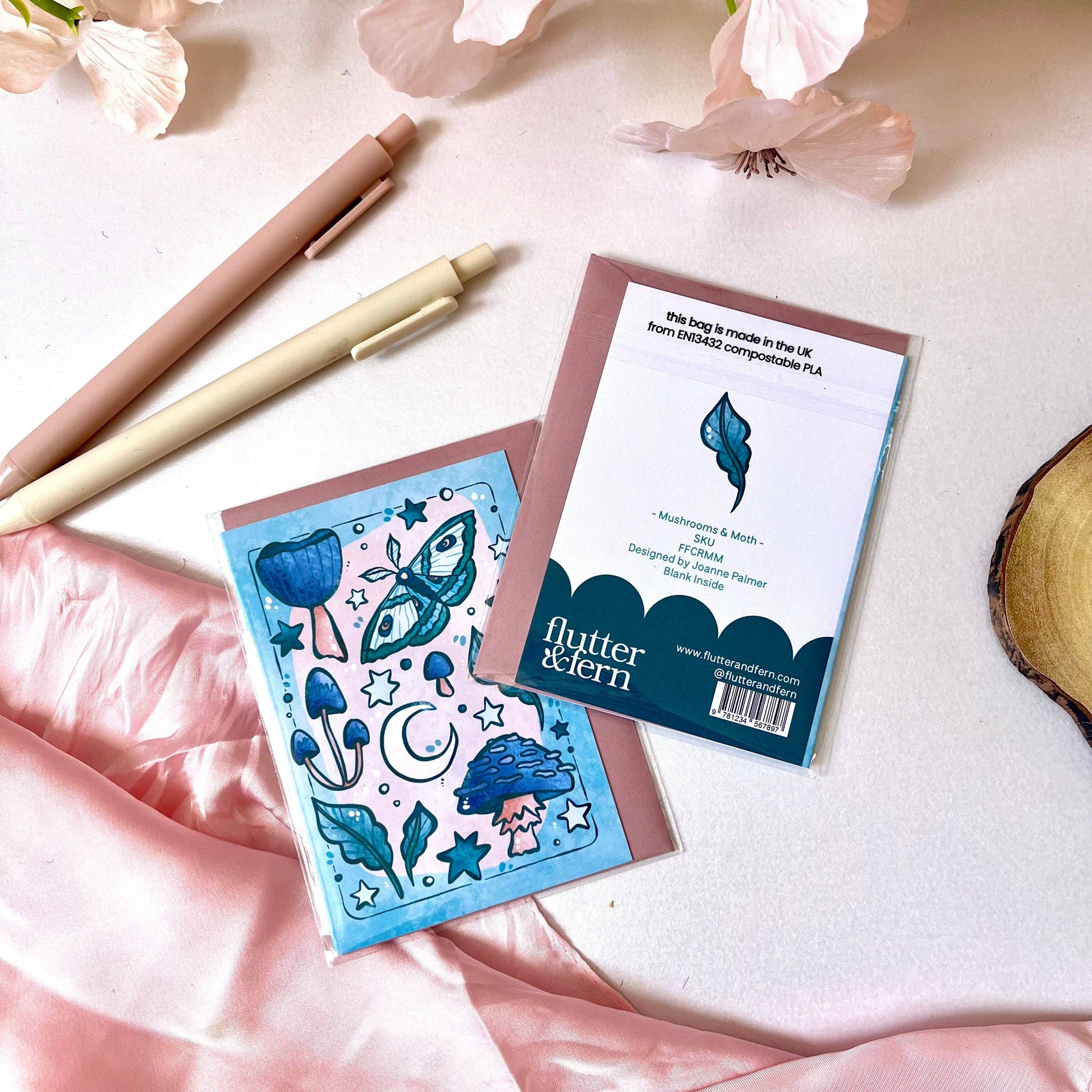 Get your cottagecore game on with our Mushrooms & Moth A7 Card! Featuring whimsical mushrooms and a quirky moth, this card is perfect for any nature lover. Show off your quirky side and send some love with this unique card.