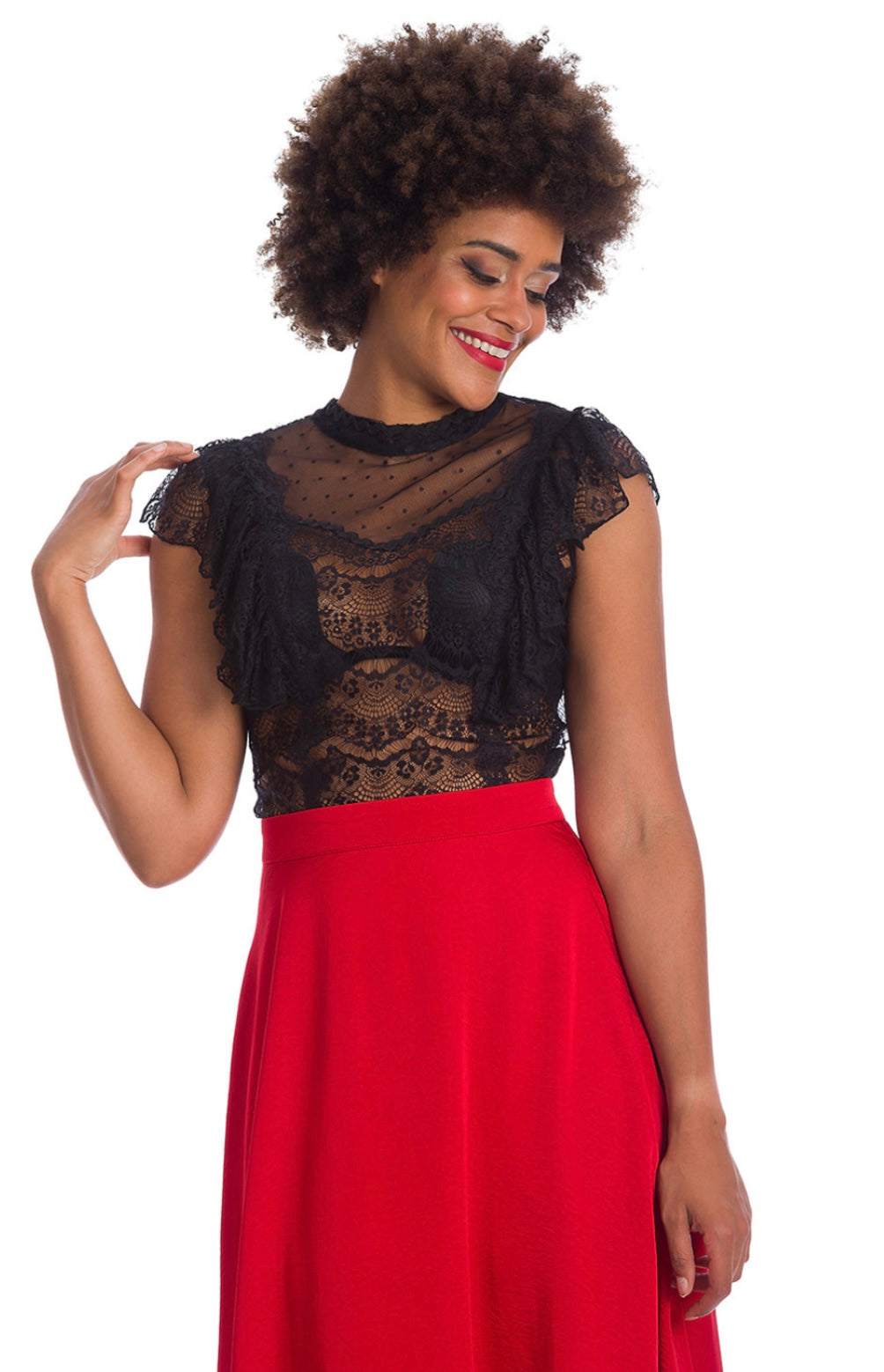Lace Top with Frill detail and keyhole on the back.